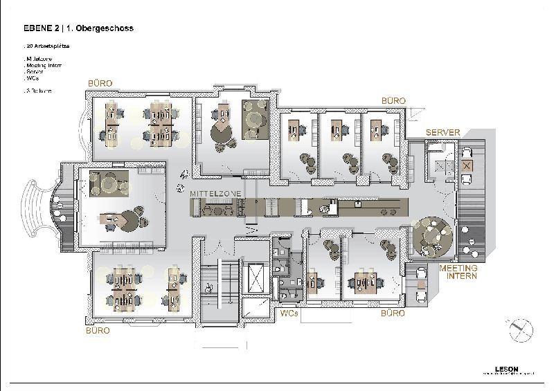 Jede einzelne Geschossplanung hieraus kann auch bei etagenweiser Anmietung zu Gestaltung herangezogen werden.